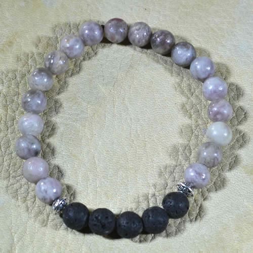 Lilac stone aromatherapy bracelet made with all natural lava stones and neutral colored lilac stone gemstones. Handmade by Jack’s Gems.